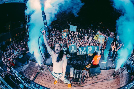 DJ Steve Aoki in Tampa, FL performing with CO2 Cryo Stage Jets |
